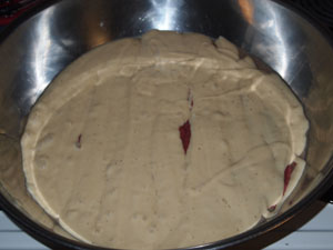 Too much strawberry in the banana and it will blend too consistently, as each time you swipe through with the ladle you're stirring it up. We want swirls, asymmetrical and organic. |